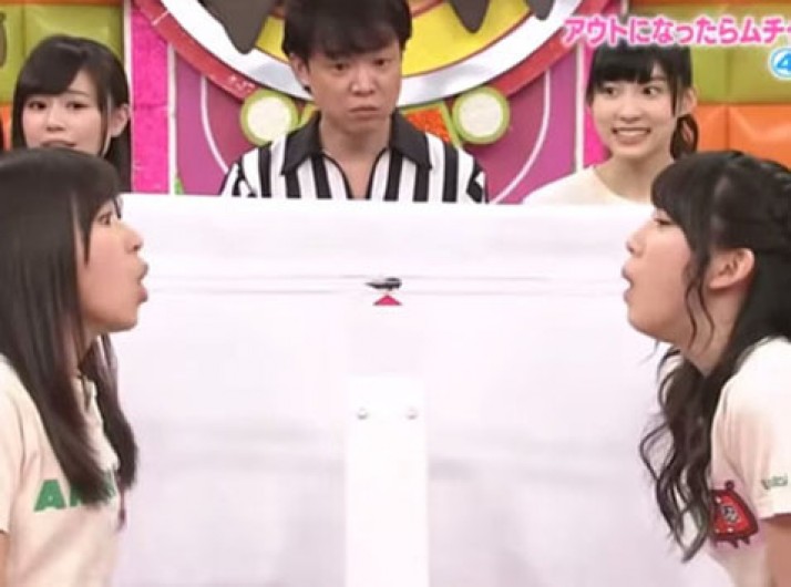 Jovens tentam assoprar baratas na boca uma da outra em jogo japonês