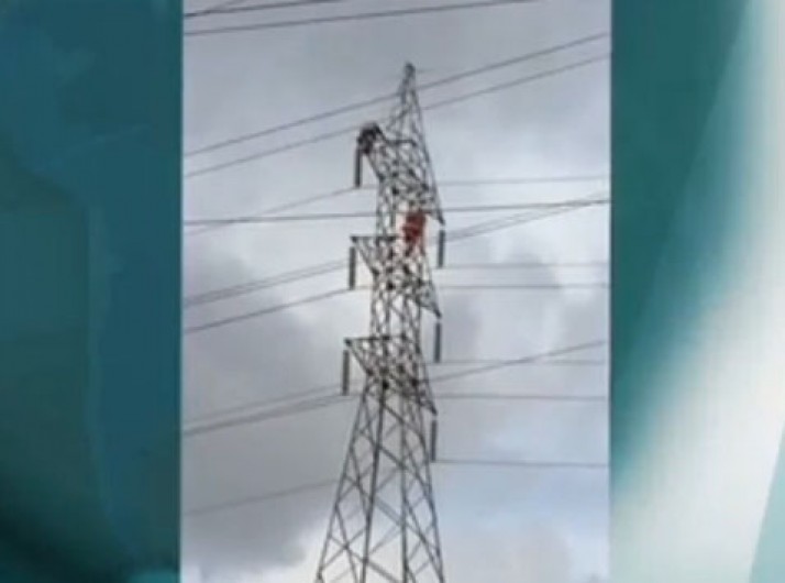 Bombeiros socorrem mulher em torre de alta tensão no DF; veja