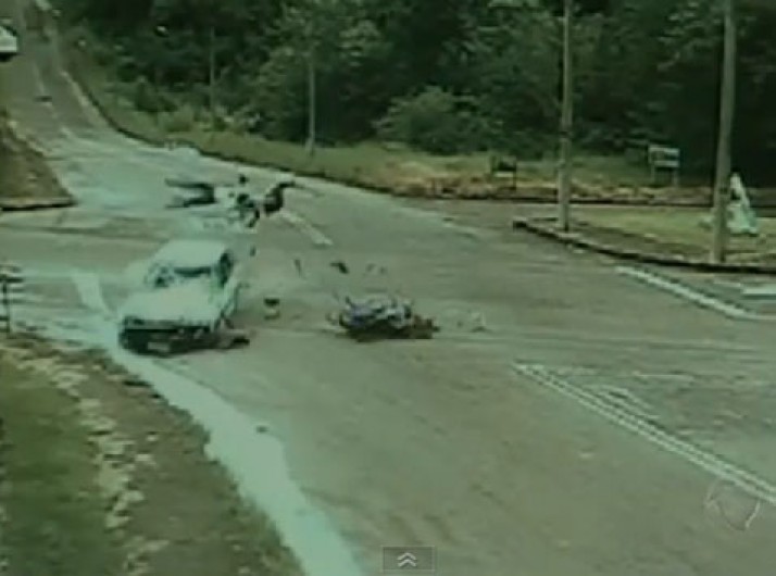 Acidente chocante: carro em alta velocidade colide com uma moto