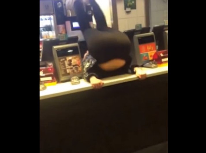 Sueca faz lambança após dar backflip em balcão de restaurante fast-food