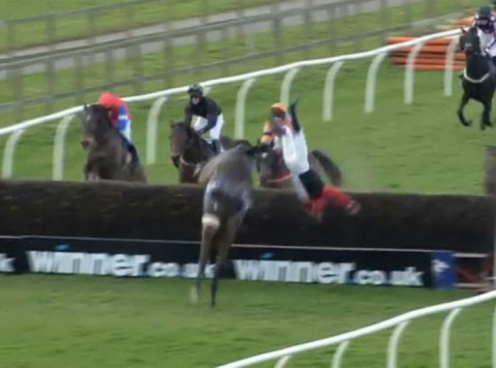 Jóquei leva tombo espetacular quando liderava corrida na Inglaterra