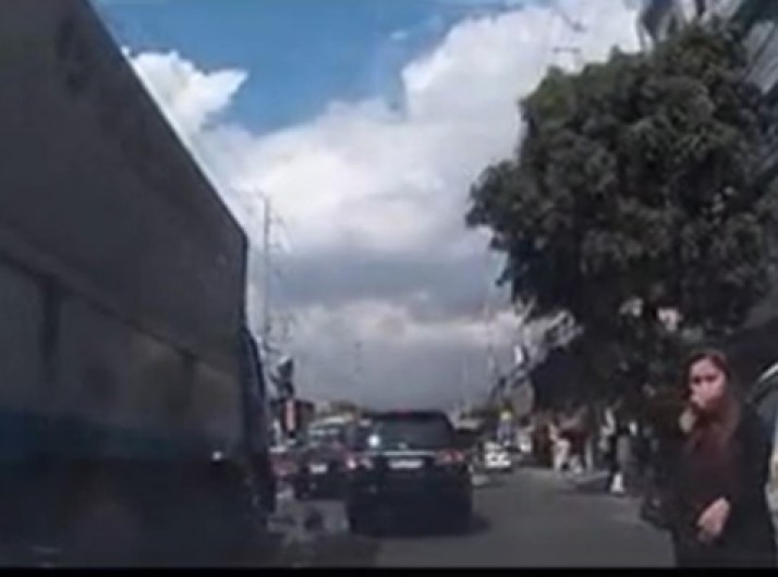 Nas Filipinas, ciclista quase é atropelado por caminhão