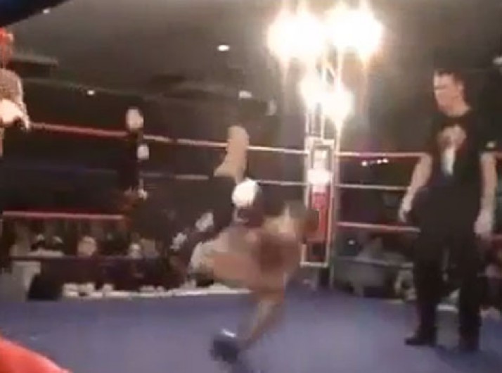 Lutador se nocauteia durante combate de kickboxing; veja