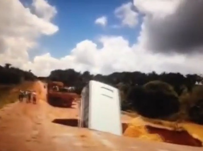 Na Transamazônica, ônibus cai em cratera e é levado por correnteza