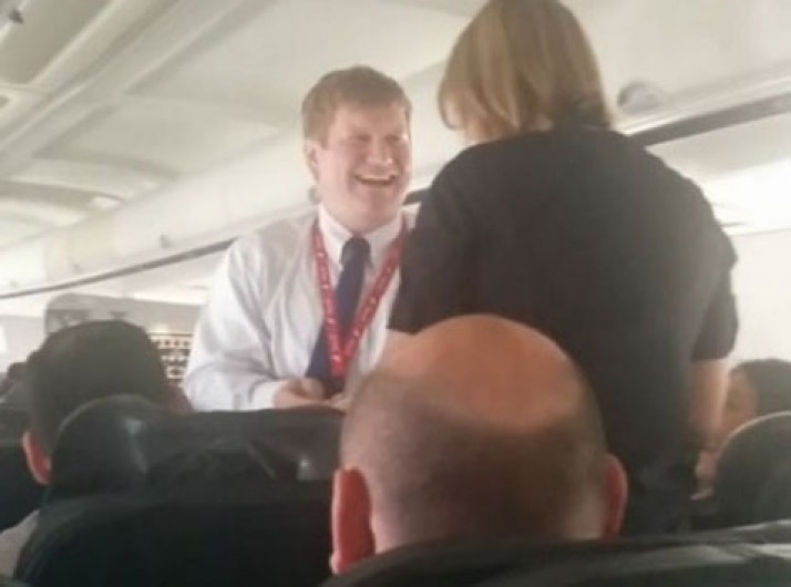 Piloto pede a mão de aeromoça durante voo; cena foi filmada