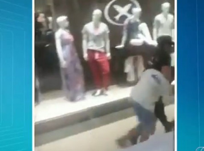 Guarda puxa jovem pelo pescoço durante tumulto em shopping