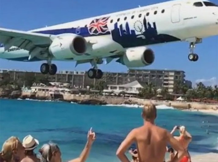Vídeo incrível mostra pouso de avião passando perto de praia no Caribe