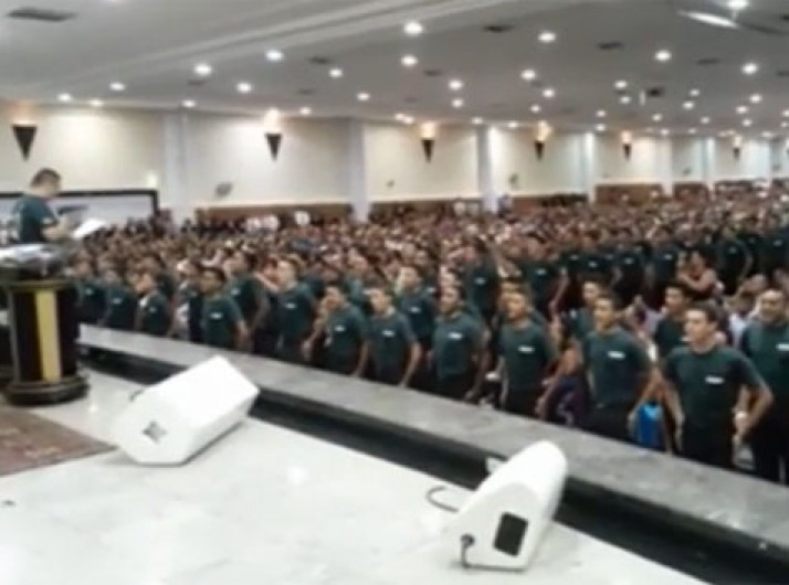 Gladiadores do Altar batem continência e gritam em culto da Universal