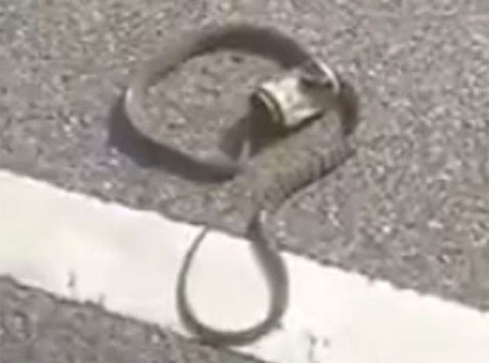 Na Tailândia, cobra é flagrada com cabeça entalada em lata de cerveja