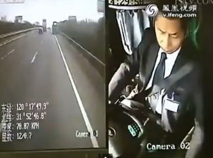 Ônibus bate em caminhão enquanto motorista está verificando celular