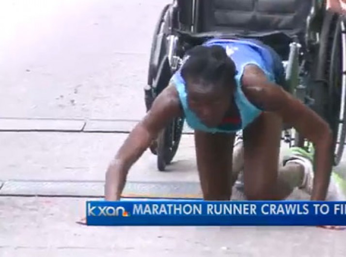 Queniana recusa cadeira de rodas e completa maratona engatinhando