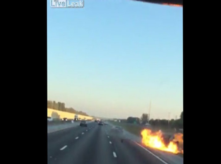 Nos EUA, picape explode após colisão em acostamento de rodovia