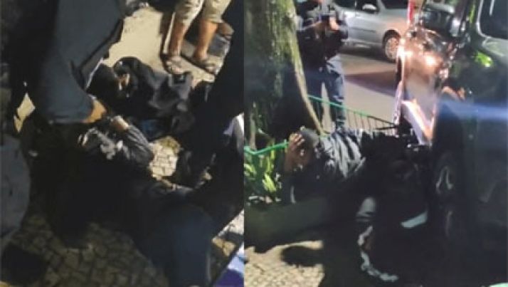 Motorista reage a assalto e atropela bandidos, que ficam presos embaixo de carro; veja