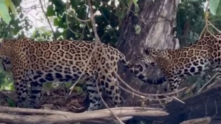 Onça-pintada desfila ao lado de filhote em cena rara em Poconé; veja