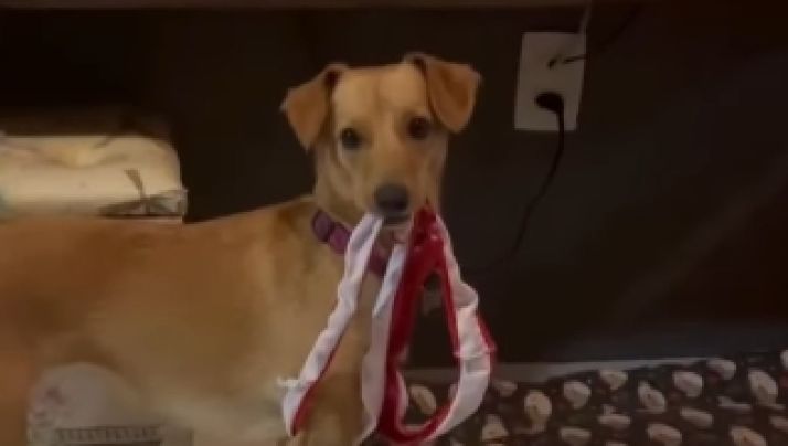 Cachorro arteiro 'rouba' calcinha e se diverte com peça íntima; veja