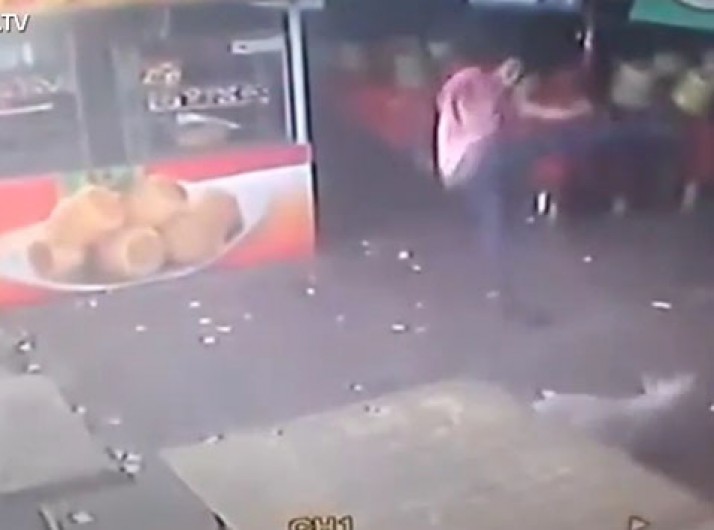 Homem tenta chutar cachorro e acaba caindo de cara no chão; assista