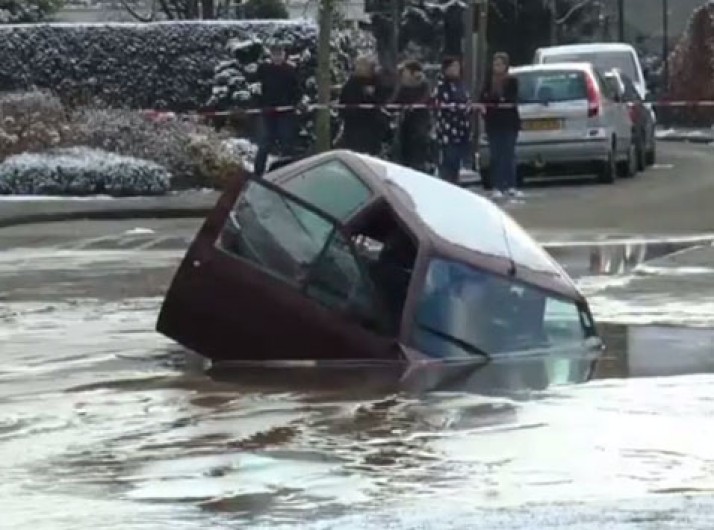 Incidente bizarro: Na Holanda, carro é engolido por buraco no meio da rua