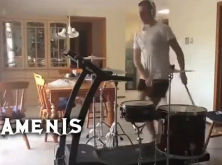 Rapaz mostra que é possível correr na esteira e tocar bateria