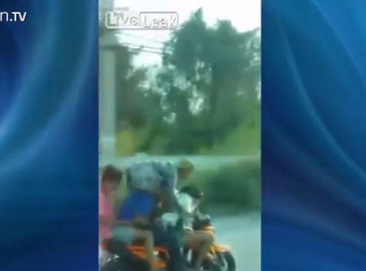 Bizarro: motorista flagra quatro pessoas em uma moto