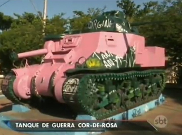 Homem é detido por pintar tanque de guerra de rosa no RJ