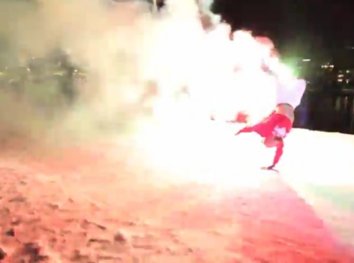 Acrobatas fazem número impressionante com fogos nos pés