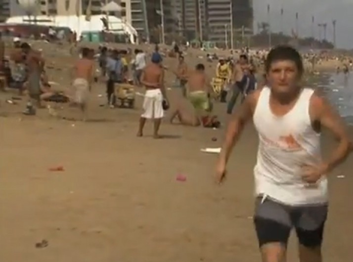 Na praia, homem é flagrado dando chute na cabeça de mulher; veja