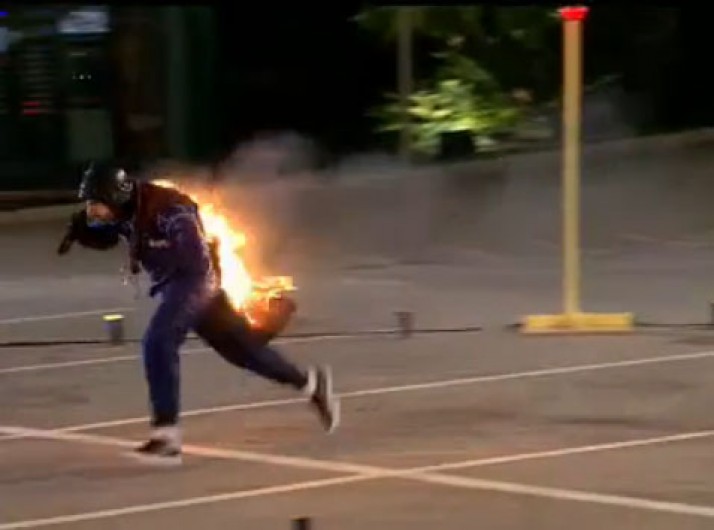 Simulando acidente: bolinha é incendiado ao vivo no Pânico