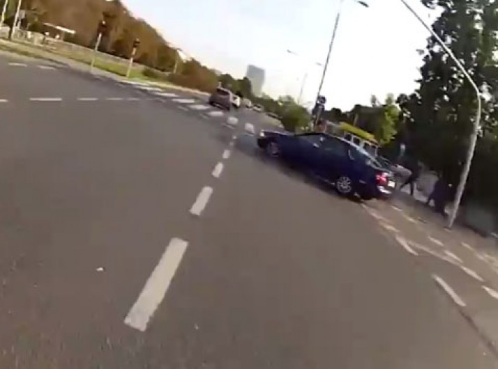 Motociclista tenta evitar colisões com carro pela cidade