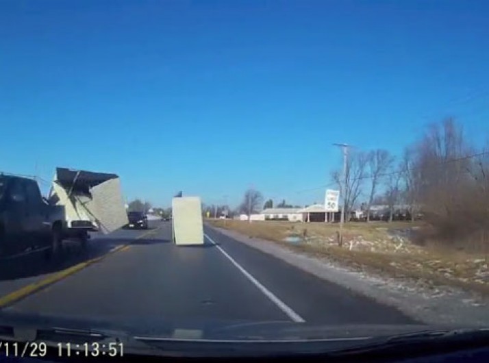 Placa de madeira escapa e acerta carro em movimento