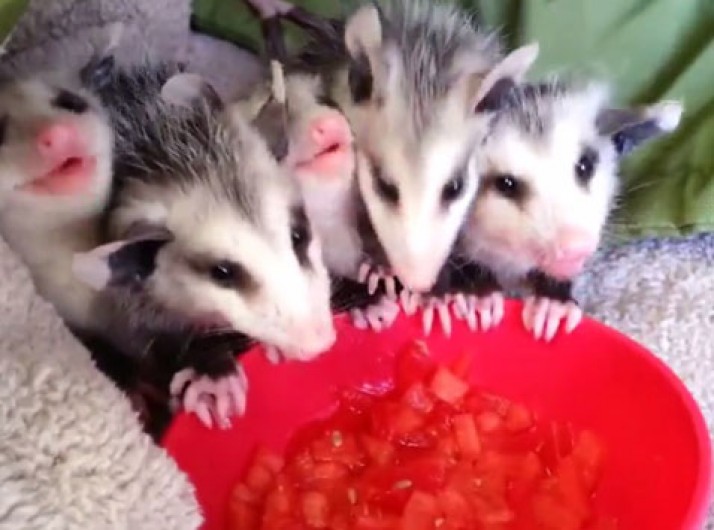 Bizarro: cinco bebês gambá devoram pote de melancia