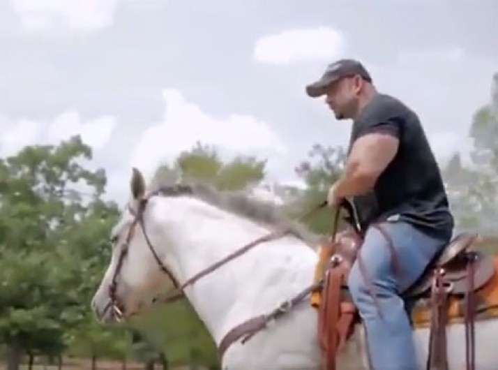 Fisiculturista não consegue controlar o cavalo e vai parar no chão