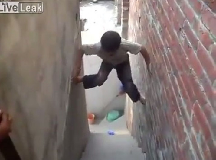Menino paquistanês é fera escalando muros com os pés e mãos