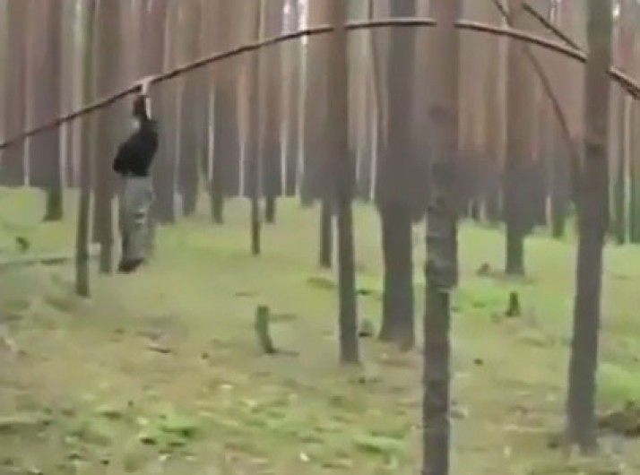 Homem se balança em galho de árvore até que ele quebra