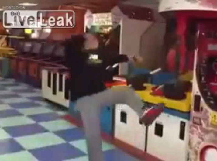 Jovem Bruce Lee brinca de lutinha em máquina do shopping