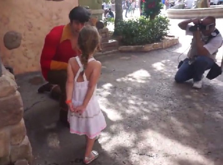 Garota briga com vilão de A Bela e a Fera em parque da Disney