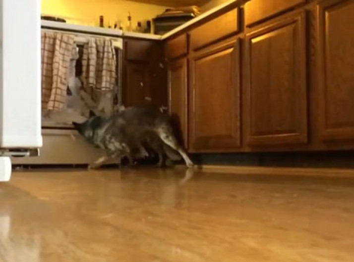Cachorro entra com bola e tudo e quebra porta do fogão