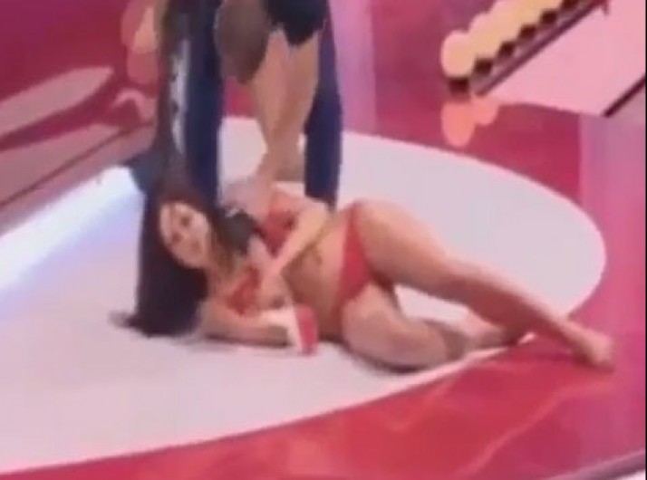 Mulher de biquíni leva soco de rival ao vivo em programa de TV