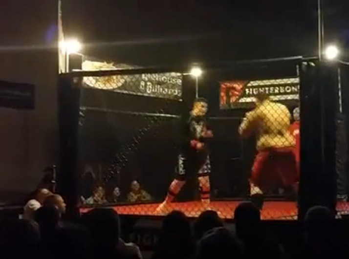 Lutador tenta acertar golpe ousado e cai de maduro no chão