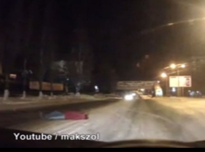 Pedestre “cansada” tira um cochilo no meio de estrada