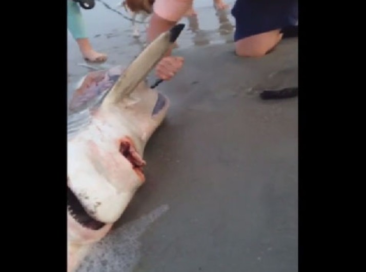 Banhista abre fêmea morta e salva filhotes de tubarão