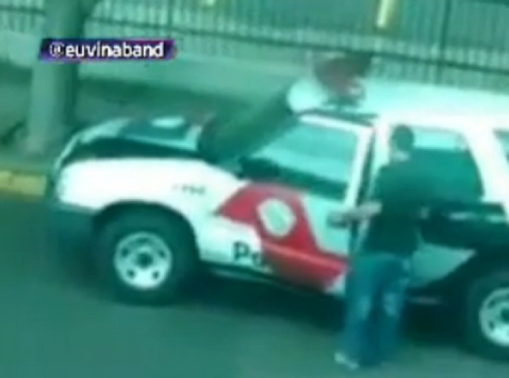 Câmera flagra homem entrando em viatura e roubando bolsa de PM