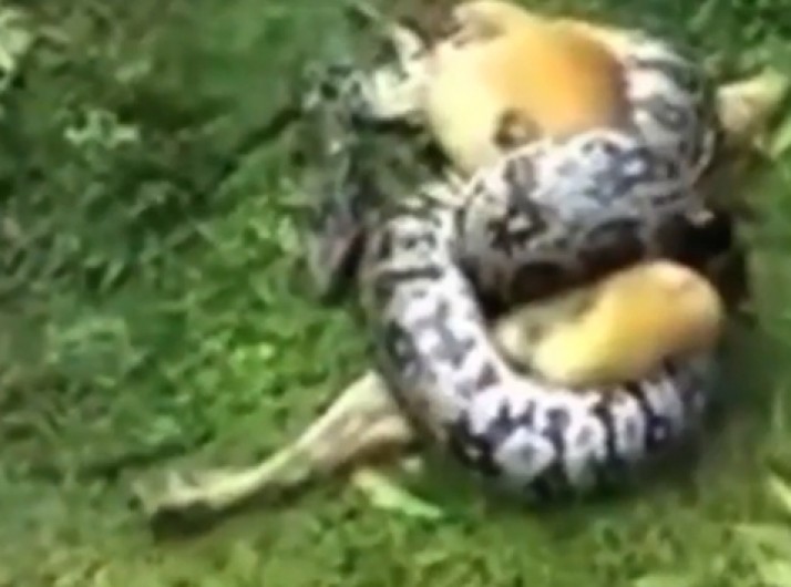 Cachorro escapa de ser esmagado por cobra no último minuto