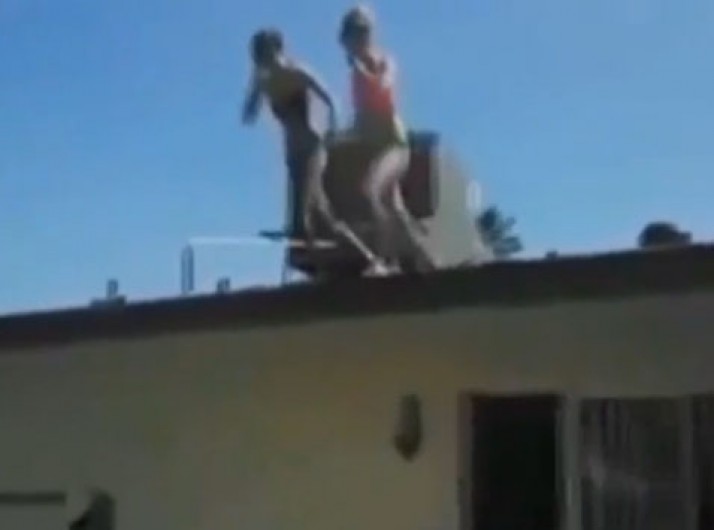 Ela quis se exibir pulando do telhado, mas se deu muito mal