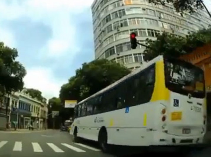 Ônibus ignora sinal vermelho e por pouco não causa tragédia