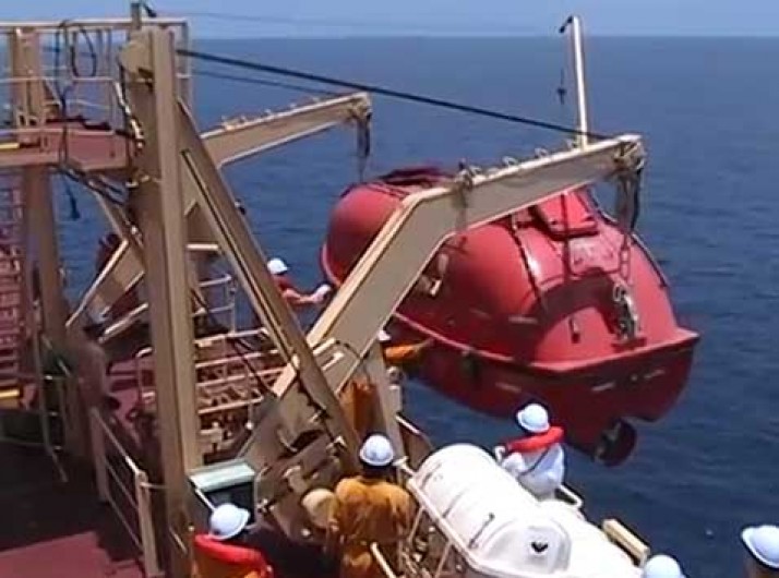 Barco salva-vidas cai de guindaste em alto mar durante içamento