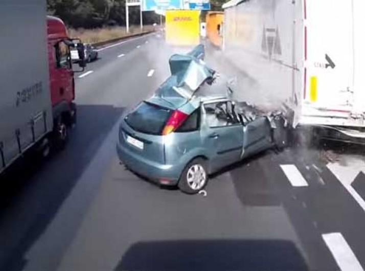Flagrante: Na Bélgica, carro é destruído por dois caminhões; vítima sobreviveu