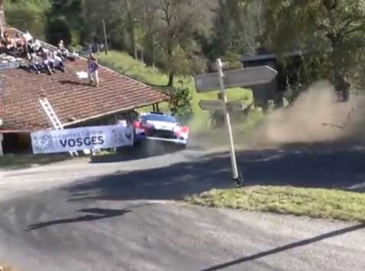 Piloto perde controle do carro em rali e acerta o telhado da casa
