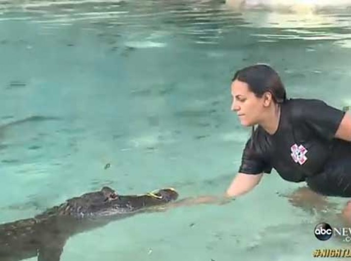 Viciada em adrenalina, grávida participa de shows com jacarés