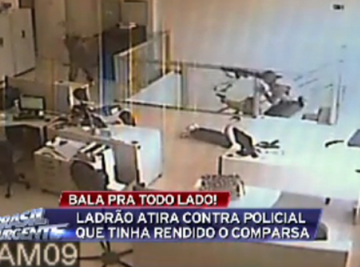 Câmera de segurança flagra tiroteio entre policial e assaltante; veja