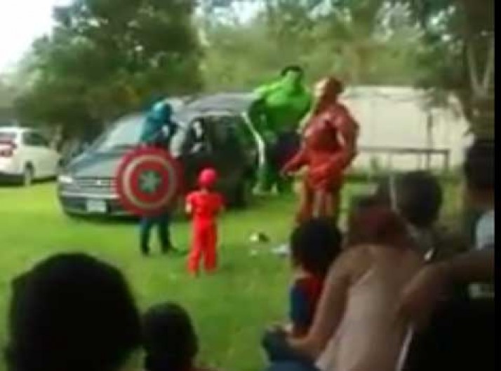 "O Incrível Hulk" leva tombo bizarro ao entrar em festa para crianças